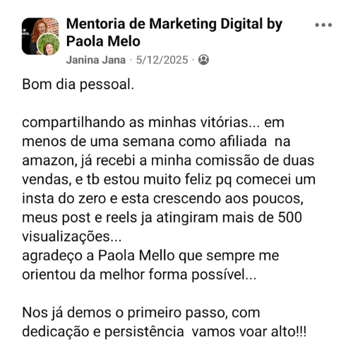 Após realizar a sua inscrição, basta me enviar pelo Direct do Instagram ou TIKTOK @paolamelo.mkt a palavra "FEITO", com o comprovativo de pagamento e o e-mail que utilizou na inscrição para que eu possa te parabenizar e te enviar todos os seus bônus!
