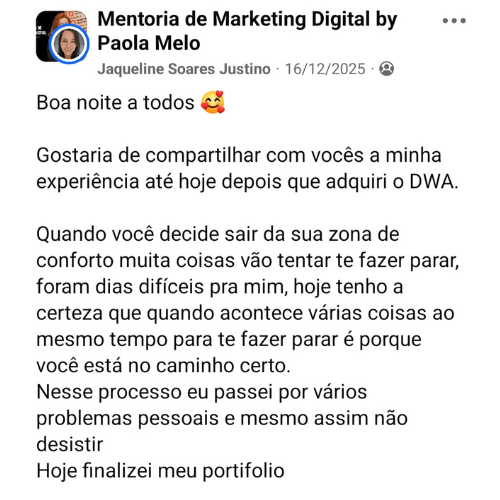 Se você não me conhece, prazer eu sou a Paola, mãe solo, imigrante em Portugal, eu investi em 10 cursos antes do DWA. Hoje vivo do digital, tenho 6 fontes de renda online e fiz minha transição do call center em apenas 8 meses. E agora você está a uma passo de transformar a sua vida também!
